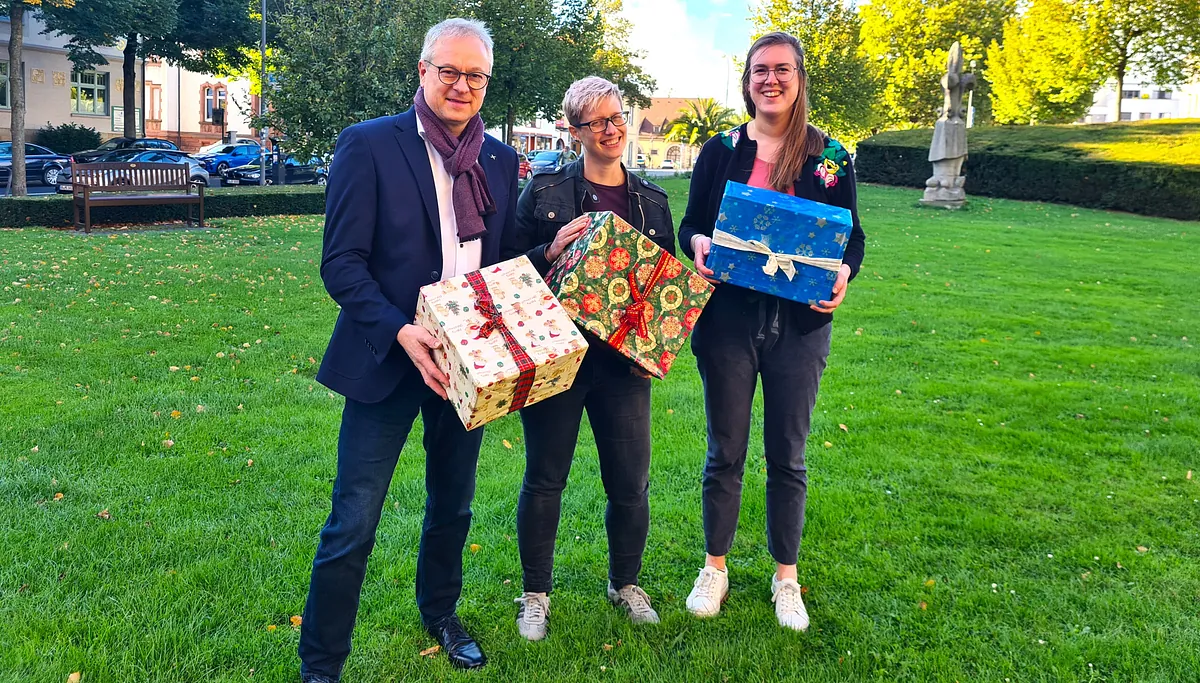 Dekan Dr. Thorsten Waap, Freiwilligenmanagerin Simone Möhring und Pfarrerin Natascha Weigelt freuen sich, dass die Spenderinnen und Spender der Aktion Christkindhelfer jetzt schon im dritten Jahr Kinder aus der Region an Weihnachten unterstützen.